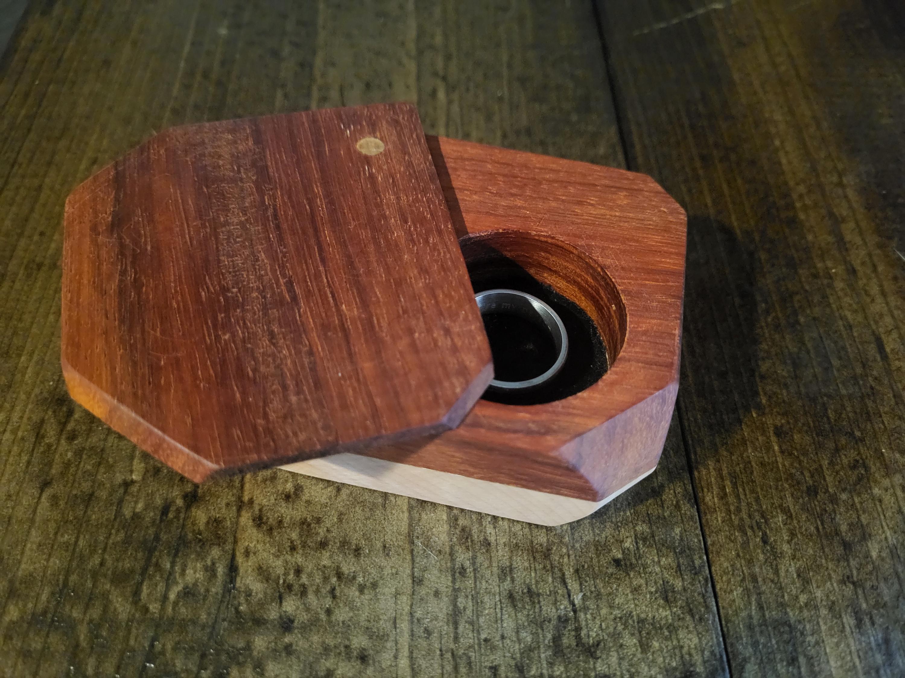 ✨ Your proposal ring box is unique and is made in a traditional way and not to the chain. It takes several hours of creation. Due to the handmade nature of this wood box, they may vary slightly from the ones pictured which made it a unique creation.